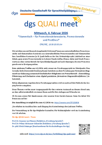 QUALI meet ist als virtuelles Graduiertenkolleg der Deutschen Gesellschaft für Sprachheilpädagogik (dgs) e.V ein Treffpunkt für diejenigen, die sich wissenschaftlich im Bereich der Sprachheilpädagogik qualifizieren (möchten). Es richtet sich an Forschungsinteressierte im Bereich sprachlich-kommunikativer Beeinträchtigungen im Kontext von Bildungsprozessen – innerhalb der Schnittbereiche von Bildungsverläufen (Kita – Schule – berufliche Bildung) und Interprofessionalität (pädagogische Fachkräfte – Lehrkräfte/ Sonder-/Förderpädagog:innen – sprachtherapeutische bzw. logopädische Fachkräfte).